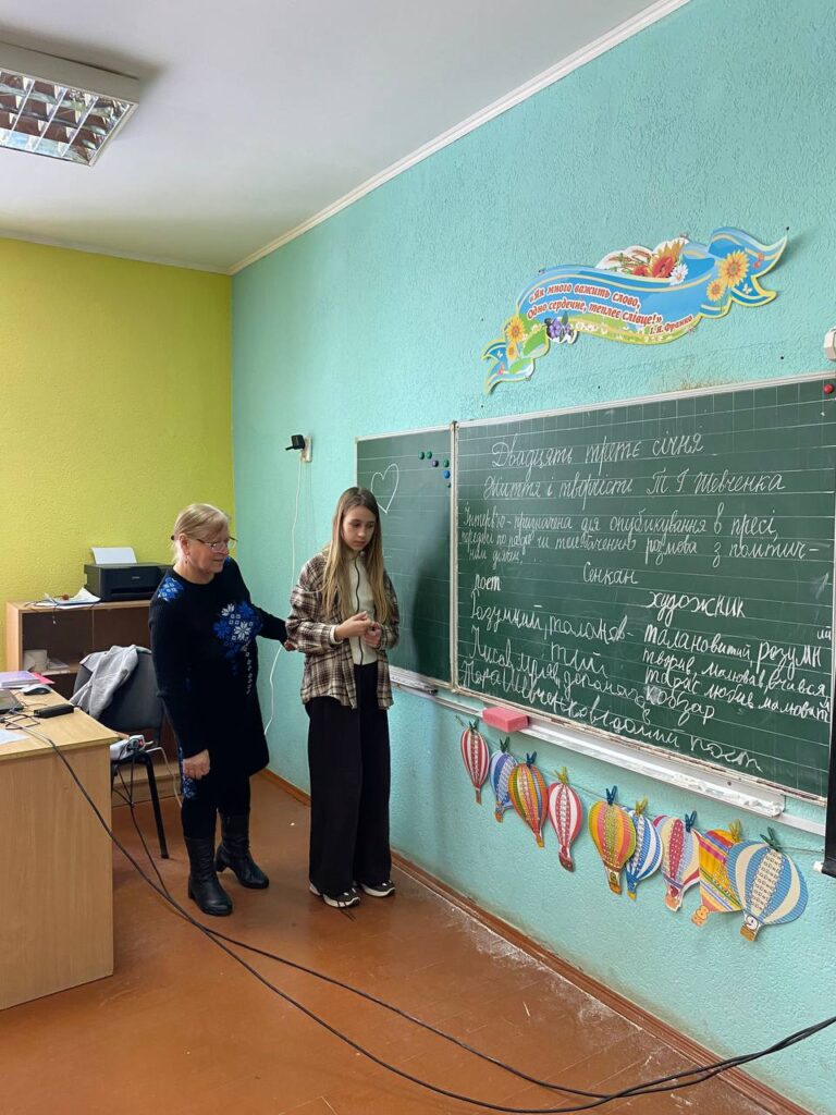 П’ятикласники на уроці української літератури досліджували життя і творчість Великого Кобзаря. Аукціон знань показав, що учні засвоїли багато нової інформації. Вміло відповідали на запитання, складали сенкан. Прослухавши ,,Заповіт”, дійшли висновку: мрії поета здійснилися. Його пам’ятають, шанують і поважають. Із його словами йдуть на бій із ворогами Знають прислів’я та приказки. У рольовій грі відтворили фрагмент навчання Тарасика у дяка. На уроці були присутні: перша вчителька Галина Юхимівна, класний керівник Олександр Миколайович, а також ,,журналісти” місцевої преси. Анастасія Горішна та Андріана Фуга висловили свої враження від побаченого і почутого, про що й напишуть. Софія Гиндюк вела телерепортаж із місця подій. Урок проходив досить жваво і цікаво. Тут поглиблюють знання, розвивають мовлення, творчі здібності. В учнів загорілась іскорка бажання працювати творчо, розкрити себе як особистість.