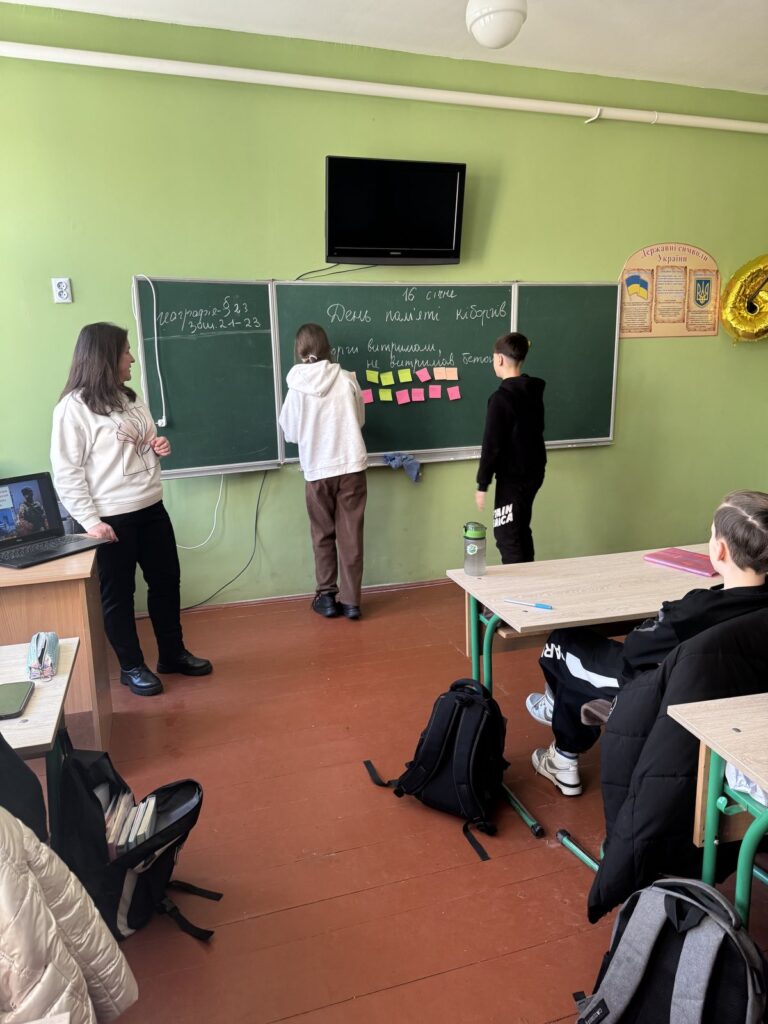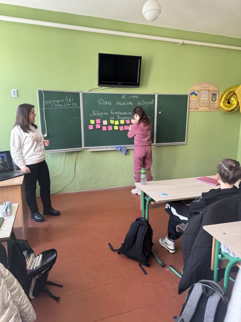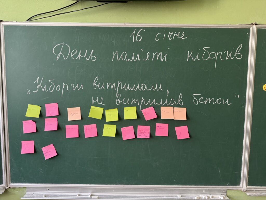 Діти дізналися більше про історію оборони, про те, чому наших захисників назвали “кіборгами”, про їхню мужність і самопожертву. Ми говорили про ціну свободи та важливість пам’яті про тих, хто віддав своє життя за Україну. Хвилиною мовчання вшанували пам’ять усіх, хто загинув, захищаючи Україну.