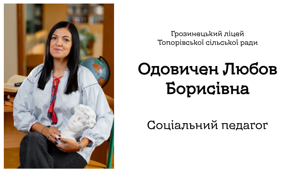• З 1 вересня 2025 року на посаді соціального педагога в Грозинецькому Ліцеї Топорівської сільської ради.